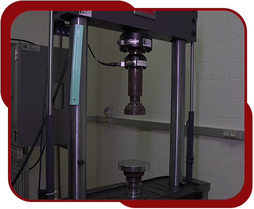 Máquina universal de ensaios com acionamento servo-hidráulico e capacidade de ±250 kN. O equipamento conta com um sistema de controle modernizado por retrofit com controlador MTS, permitindo a realização de ensaios quase-estáticos e de fadiga. Possibilita testes em temperaturas entre -60 °C e ambiente, por meio de imersão em álcool resfriado. O conjunto de clip gages, extensômetros lineares, clevises e diversos dispositivos específicos amplia a versatilidade do sistema, permitindo a execução de uma ampla gama de ensaios experimentais.